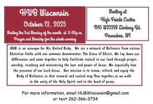 HUB Wisconsin is a satellite branch of HUB Ministries based in Chicago. HUB is an acronym for His United Body. We are a network of believers from various Christian denominations with one common denominator: the cross of Christ.
