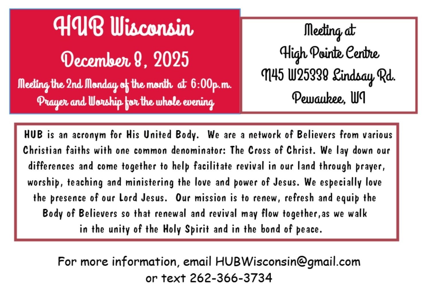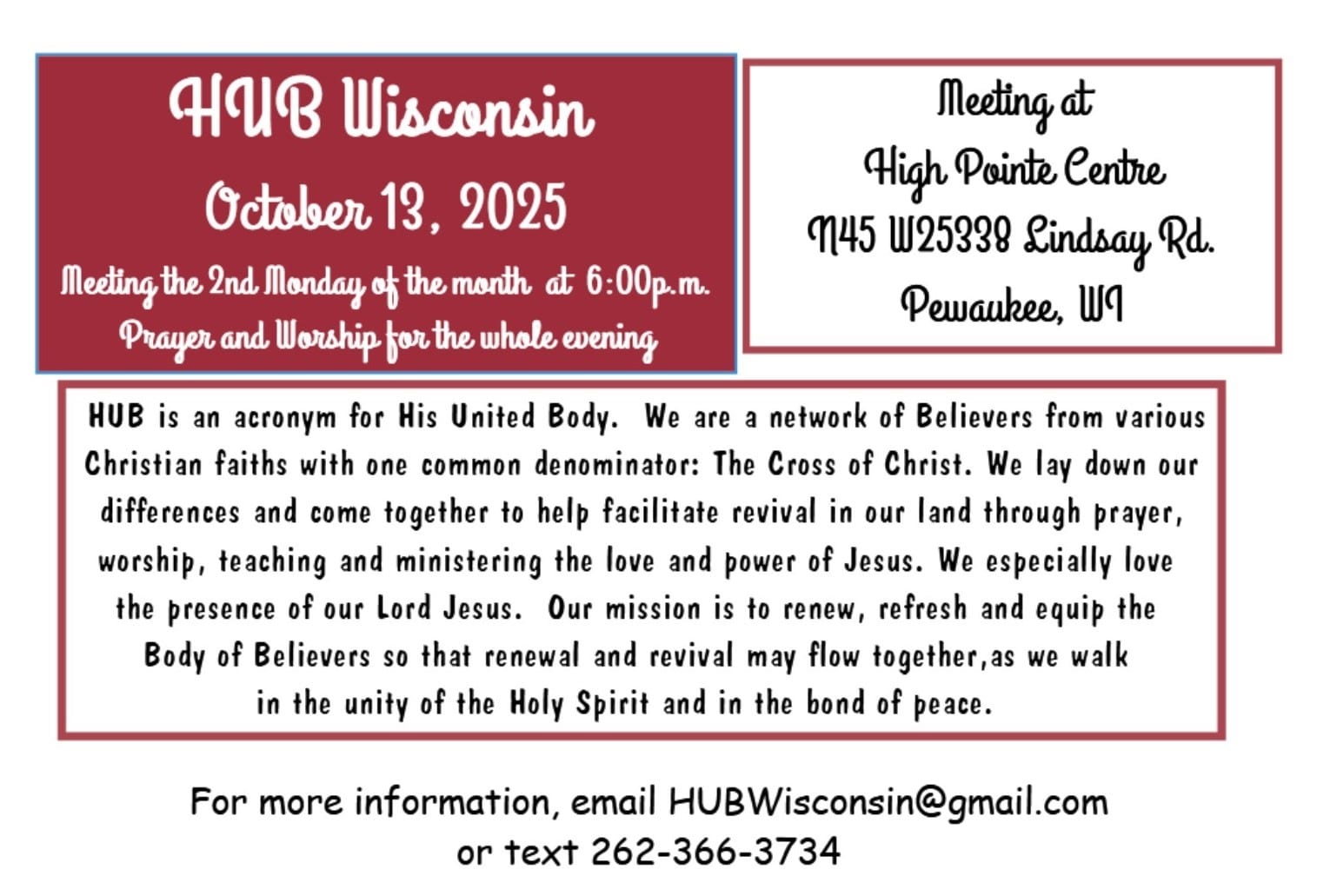 For more information, email HubWisconsin@gmail.com or Text 262-366-3734